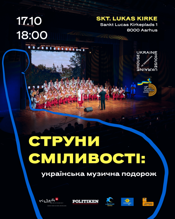 Lastivka Aarhus inviterer sammen med sine partnere til en enestående aften med H.I. Mayboroda National Honored Bandurist Capella of Ukraine, som i år fejrer sit 107-års jubilæum. Denne velgørenhedskoncert er en del af en europæisk turné, der har til formål at støtte ukrainsk kultur, de ukrainske væbnede styrker samt bevare og formidle den ukrainske musikarv.